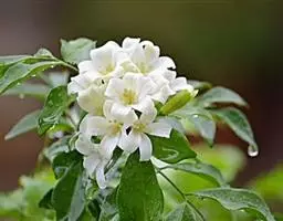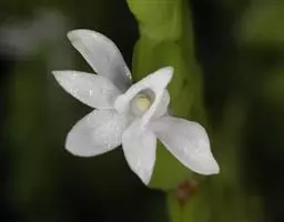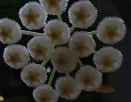 花白色,多朵组成稠密的聚伞花序,顶生,被柔毛;总花梗长4-7cm;花梗长约1mm;花冠高脚碟状,花冠筒长6-10mm,中部以上膨大,内面被柔毛,裂片在花蕾时或裂片基部向左覆盖,长圆形或卵状长圆形,长2-4mm,宽2-3mm;雄蕊长圆形,长约1mm,着生在花冠筒膨大处,内藏;子房由2枚离生心皮组成,密被柔毛,花柱丝状,长4.5mm,柱头棍棒状,顶端2深裂;花盘环状。