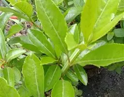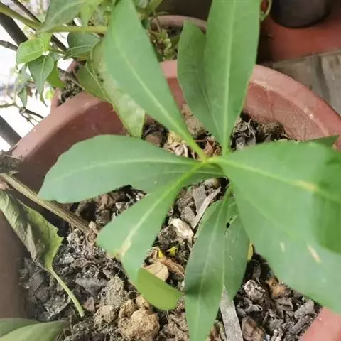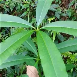 叶3-8片轮生,倒卵状长圆形、倒披针形或匙形,稀椭圆形或长圆形,长7-28cm,宽2-11cm,无毛,顶端圆形,钝或微凹,稀急尖或渐尖,基部楔形;侧脉每边25-50条,密生而平行,近水平横出至叶缘联结;叶柄长1.0-2.5cm。