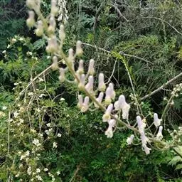 乌头 块根倒圆锥形,长2-4厘米,粗1-1.6厘米。茎高60-150厘米,中部之上疏被反曲的短柔毛,等距离生叶,分枝。