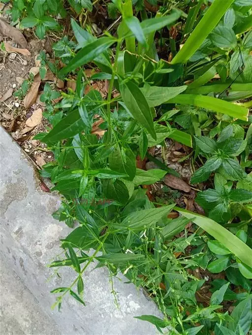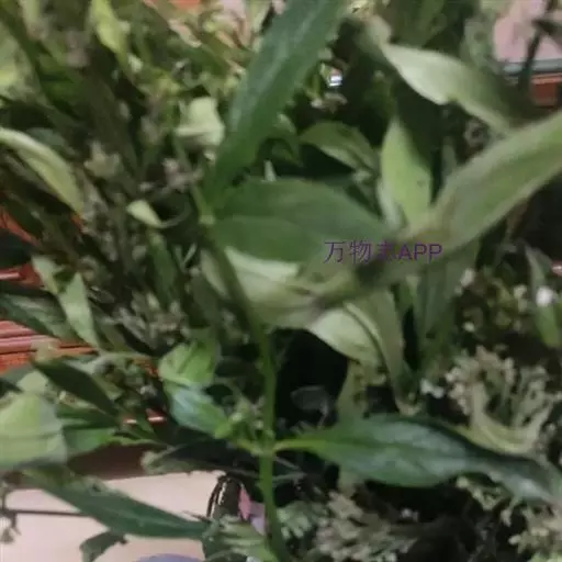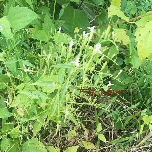 一年生草本。茎高50~80厘米,4棱,下部多分枝,节膨大。叶卵状矩圆形至矩圆状披针形,长4~8厘米,宽1~2.5厘米,顶端略钝。花序轴上叶较小,总状花序顶生和腋生,集成大型圆锥花序;苞片和小苞片微小,长约1毫米;花萼裂片三角状披针形,长约3毫米,有腺毛和微毛;花冠白色而小,下唇带紫色班纹,长约12毫米,外有腺毛和短柔毛,2唇形,上唇微2裂,下唇3深裂,花冠筒与唇瓣等长;雄蕊2,花药2室,一室基部和花丝一侧有柔毛。蒴果扁,中有一沟,长约10毫米,疏生腺毛;种子12粒,四方形,有皱纹。