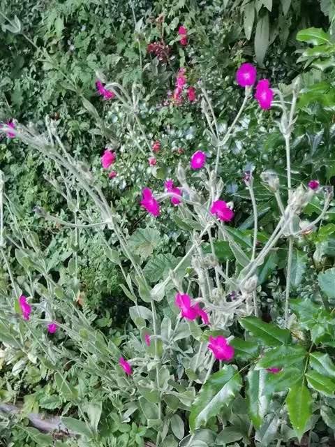 毛剪秋罗,别名:毛缕、醉仙翁,拉丁文名:Lychnis coronaria Desr. 石竹科、剪秋罗属多年生草本,高40-80厘米,全株密被灰白色绒毛。茎直立,粗壮,分枝稀疏。基生叶叶片倒披针形或椭圆形,基部渐狭呈柄状,顶端急尖;茎生叶无柄,较小。二歧聚伞花序稀疏;雌雄蕊柄短,不明显;花瓣深红色,爪倒披针形,无毛,耳缺,瓣片轮廓倒卵形,顶端微凹缺;副花冠片狭披针形,雄蕊不外露。蒴果长圆状卵形,种子肾形,黑褐色,具小瘤。花期5-6月,果期6-7月。图片取自中国植物图库