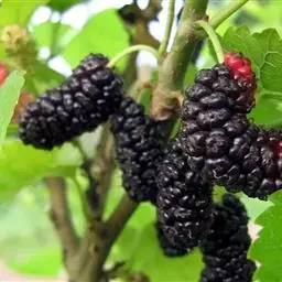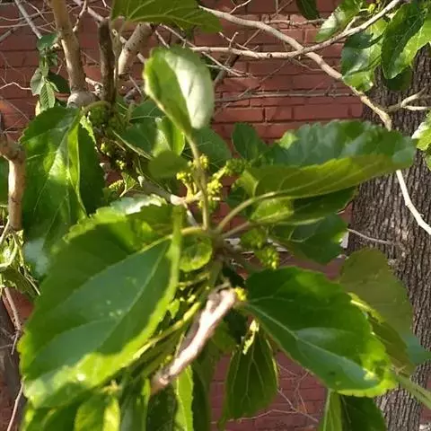 龙爪桑,学名是Morus alba cv.tortuosa,是桑科桑属的植物,是桑树的栽培变种,株高可达3m,冠幅2.0—2.5cm,树冠开张。枝条圆柱形,呈S形扭曲。叶互生,叶片大,阔卵形,先尖端,锯齿缘。5月开花,雌雄异株,雄花序下垂,雌花序直立。果实成熟时紫黑色,6月中旬成熟。龙珠桑一年生和多年生枝呈龙爪形扭曲,秋末落叶后直至春季萌发前,长达180天的观枝期,为漫长的冬季增添了观赏情趣。其果实味道鲜美,可用于生产以及酿酒等,叶片大产叶量高,可以用于养蚕,因此,龙爪桑是集观赏、鲜食、加工、养蚕等多功能于一体的优良桑树变种,具有一定的栽植应用前景。龙爪桑硬枝和嫩枝扦插生根率极差,主要用播种和嫁接法繁殖。