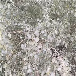 胡杨 胡杨能从根部萌生幼苗,能忍受荒漠中干旱的环境,对盐碱有极强的忍耐力。树皮淡灰褐色,下部条裂;萌枝细,圆形,光滑或微有绒毛。芽椭圆形,光滑,褐色,长约7毫米。长枝和幼苗、幼树上的叶线状披针形或狭披针形,全缘或不规则的疏波状齿牙缘;成年树小枝泥黄色,有短绒毛或无毛,枝内富含盐量,嘴咬有咸味。