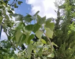 黑杨,为乔木,高30米;树冠阔椭圆形。树皮暗灰色,老时沟裂。小枝圆形,淡黄色,无毛。芽长卵形,富粘质,…