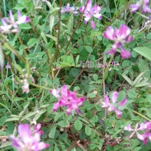 总状花序生5-10花,呈伞形;总花梗腋生,较叶长;苞片三角状卵形,长约0.5毫米;花梗短;花萼钟状,长约4毫米,被白色柔毛,萼齿披针形,长约为萼筒的1/2;花冠紫红色或橙黄色,旗瓣倒卵形,长10-11毫米,先端微凹,基部渐狭成瓣柄,翼瓣较旗瓣短,长约8毫米,瓣片长圆形,基部具短耳,瓣柄长约为瓣片的1/2,龙骨瓣与旗瓣近等长,瓣片半圆形,瓣柄长约等于瓣片的1/3;子房无毛或疏被白色短柔毛,具短柄。