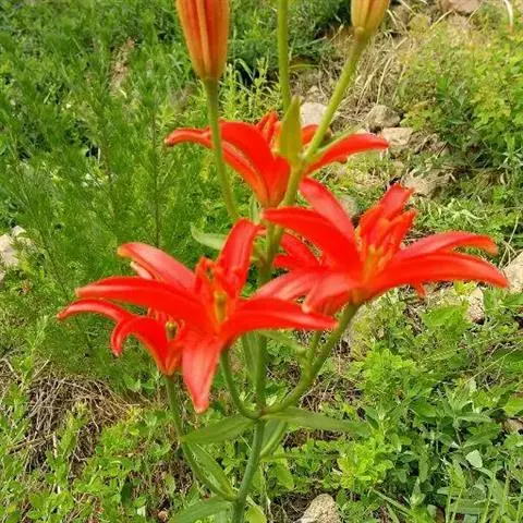 山丹百合(学名:山丹,拉丁学名:Lilium pumilum),别名山丹花、山丹丹、山丹丹花、山丹子、细叶百合。耐寒,喜阳光充足,略耐阴,喜微酸性土,忌硬粘土,生于石质山坡、草地、灌丛及疏林下。山丹百合的抗病、抗热、抗寒性及耐盐碱能力强,可食用、观赏和药用。
