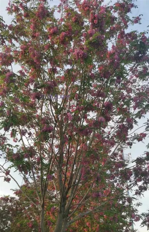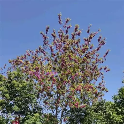 红花刺槐花大色美,呈小乔木状,可作行道树。