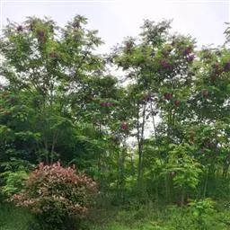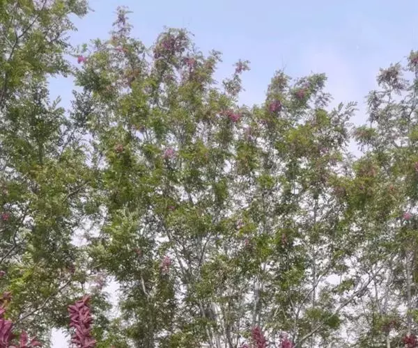 落叶乔木,高15-25米;树皮褐色,有纵裂纹。羽状复叶有小叶7-25,互生,椭圆形或卵形,长2-5.5厘米,宽1—2厘米,顶端圆或微凹,有小尖头,基部圆形。树冠椭圆状,倒卵形,花紫红色,花果期4-6月。