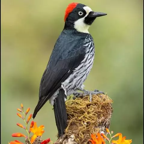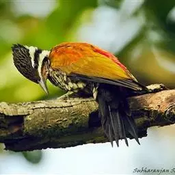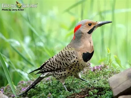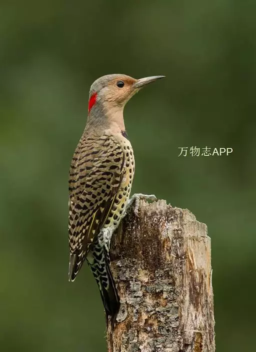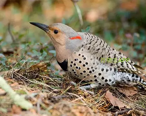 北扑翅鴷(学名:Colaptes auratus):体长30-35厘米,体重105-167克。是一种美丽的北美啄木鸟,具有迷人的外观。有一个强壮敦实的身体,小巧圆圆的脑袋,长尾巴,和一个强大的、向下弯曲的鸟喙。眼先和眼睛周围白色,面有绒革,脸颊粉红色,颈部及上胸部是色彩分明的白、黑、黄或红的色块。下巴和喉咙有黑色或白色斑点,雄性有黑色或红色的类似胡子的标记。翕、背部,肩羽,翼羽和尾巴覆盖着黑褐色、棕色或白色的细条纹。嘴黑色,腿爪灰绿色,虹膜是棕色或红棕色。