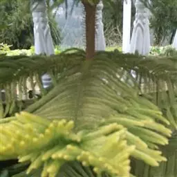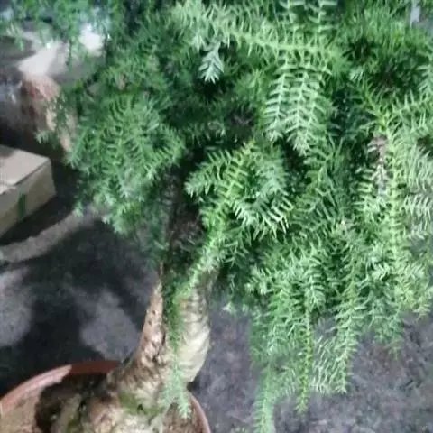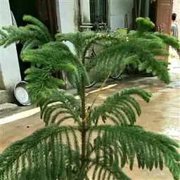异叶南洋杉(学名:Araucaria heterophylla (Salisb.) Franco)是南洋杉科南洋杉属植物,乔木,在原产地高可达50米以上,树干通直,树皮暗灰色,树冠塔形,叶二型:钻形,光绿色,叶片弯曲,通常两侧扁,上面具多数气孔线,有白粉,树及花果枝上的叶排列较密,微开展,基部宽,先端钝圆,雄球花单生枝顶,圆柱形。球果近圆球形或椭圆状球形,苞鳞厚,种子椭圆形,稍扁,两侧具结合生长的宽翅。