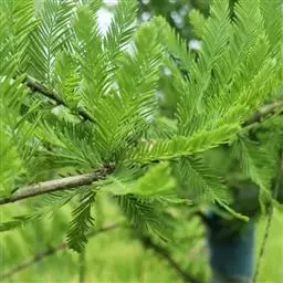 乔木,在原产地高达50米以上,胸径达1.5米;树干通直,树皮暗灰色,裂成薄片状脱落;树冠塔形,大枝平伸,长达15米以上;小枝平展或下垂,侧枝常成羽状排列,下垂。叶二型