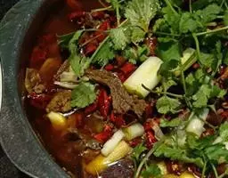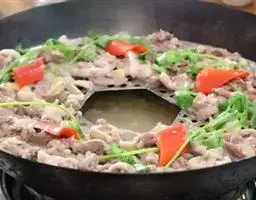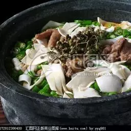原料:猪肉,时 令鲜蔬 譬如:豆芽、白菜、莴笋、土豆、菌菇类的木耳、平菇、金针菇、豆瓣,干辣椒面,花椒,姜,蛋清