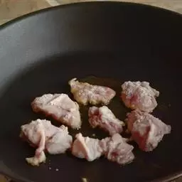 4.热油锅(油多点),入肉片划散,发白断生后捞起备用。