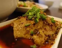 水煮肉片(Poached spicy slices of pork),是一道地方新创名菜,起源于自贡,发扬于西南,属于川菜中著名的家常菜 。因肉片未经划油,以水煮熟故名水煮肉片。