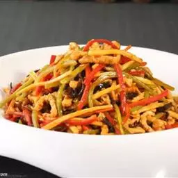 鱼香肉丝,是四川的一道特色名菜,该菜品以泡辣椒、泡姜、大蒜、黄葱、生姜和醋炒制猪里脊肉丝而成,…