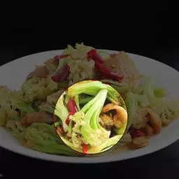 2.芹菜、蒜苗、豌 豆类可用元自菜叶代之,将元白菜撕成大片,一同下入锅内烧至入味,盖在肉片上面风味尤佳。