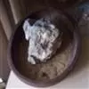 3.炒锅烧热,放入辣椒、花椒焙干,用擀面杖碾碎;
