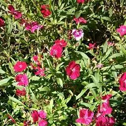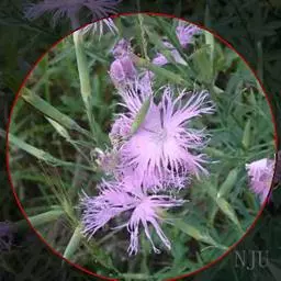 石竹,别名:兴安石竹、北石竹、钻叶石竹、蒙古石竹、丝叶石竹、高山石竹、 辽东石竹、长萼石竹、长苞石竹、林生石竹、三脉石竹,瞿麦草,拉丁文名:Dianthus chinensis L. 为双子叶植物纲、石竹科、石竹属多年生草本,高30-50厘米,全株无毛,带粉绿色。茎由根颈生出,疏丛生,直立,上部分枝。叶片线状披针形,顶端渐尖,基部稍狭,全缘或有细小齿,中脉较显。花单生枝端或数花集成聚伞花序;紫红色、粉红色、鲜红色或白色,顶缘不整齐齿裂,喉部有斑纹,疏生髯毛;雄蕊露出喉部外,花药蓝色;子房长圆形,花柱线形。蒴果圆筒形,包于宿存萼内,种子黑色,扁圆形。花期5-6月,果期7-9月。