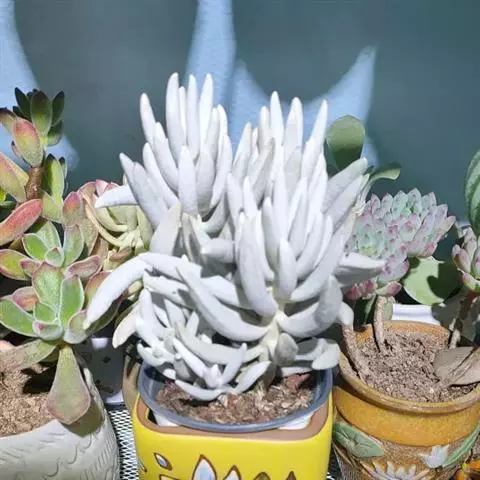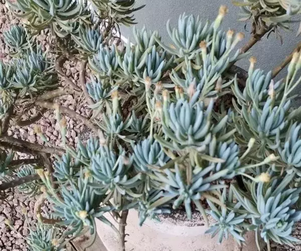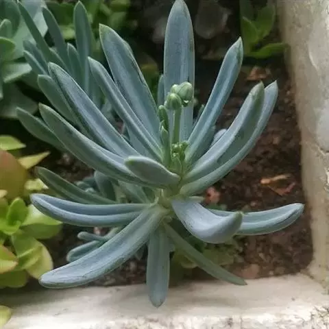 蓝松(Senecioserpe)菊科,千里光属,原生地位于南非南部沿海地区。在受到强光照射时,会变成绚丽的紫色。比起其它的多肉品种,更加耐热。要用透气性好的植料种植,普通泥土易导致根部腐烂。