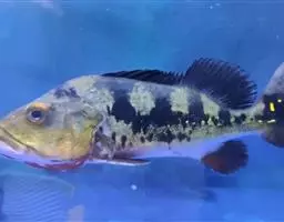 背鳍有5根弱小鳍棘,向后顺序增长。侧线止于尾柄前方。体侧有5条横带;第一条最窄,自背部穿过眼径达到腹侧;第四条最宽,在其上方于背鳍基部有一大黑斑;第五条不明显,位于尾柄。体呈珍珠白色。体呈有多条的横带。在第三条横带上部的背鳍处有1个眼斑,在大的成鱼中眼斑变成黑色斑点。