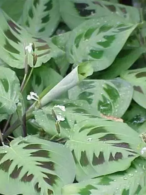 花叶竹芋:竹芋科,竹芋属匍匐状分枝草本植物,植株矮小,高可达40厘米,叶片长圆形、椭圆形至卵形,基…