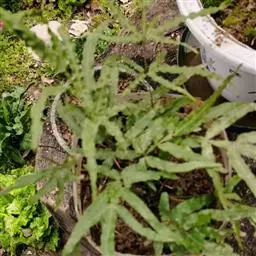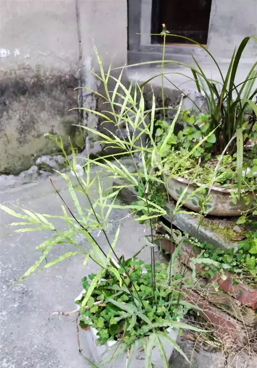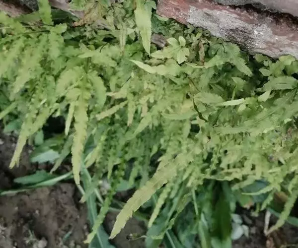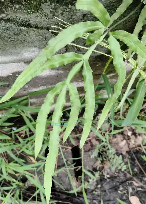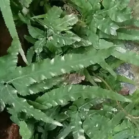 井栏边草(学名:Pteris multifida Poir.)是凤尾蕨科,凤尾蕨属陆中小型蕨类植物,植株高可达45厘米。根状茎短而直立,先端被黑褐色鳞片。叶多数,密而簇生,叶片卵状长圆形,一回羽状,羽片通常对生,无柄,线状披针形,先端渐尖,有时近羽状,能育叶有较长的柄,羽片狭线形,叶轴禾秆色,稍有光泽。