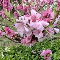 桃 Batsch),蔷薇科李属落叶小乔木植物;枝条圆柱形,光滑;叶互生,卵状披针形或长圆状披针形,…