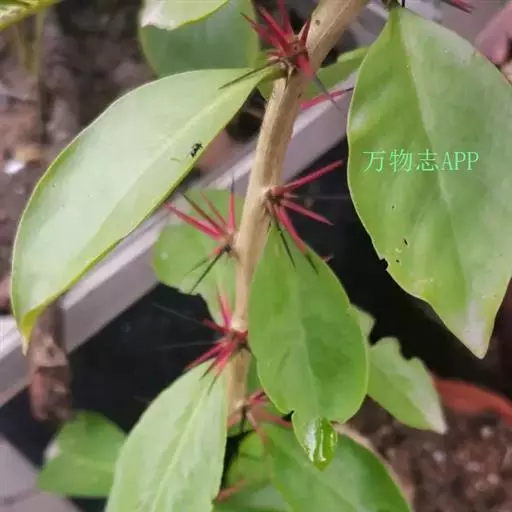 木麒麟(学名:Pereskia aculeata Mill.):基部主干灰褐色,表皮纵裂;分枝多数,圆柱状,具长的节间,绿色或带红褐色,无毛;小窠生叶腋,垫状,具灰色或淡褐色绒毛;刺针状至钻形,褐色,在攀援枝上常成对着生并下弯成钩状,较短。叶片卵形、宽椭圆形至椭圆状披针形,先端急尖至短渐尖,边缘全缘,基部楔形至圆形,稍肉质,无毛,上面绿色,下面绿色至紫色;侧脉每侧4-7条,在上面稍下陷或平坦,于下面略突起;叶柄无毛。花于分枝上部组成总状或圆锥状花序,辐状;花托外面散生披针形至线状披针形叶质鳞片及腋生小窠,小窠具黄褐色至淡灰色绒毛和细刺。