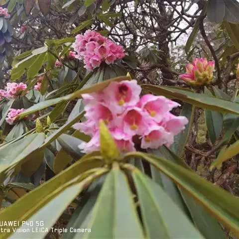 云锦杜鹃是杜鹃花科杜鹃属常绿灌木或小乔木;株高达12米;枝小枝粗,黄绿色,初具腺体;叶叶厚革质,…
