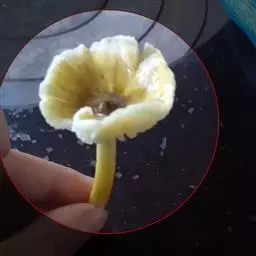 花白色,花梗粗壮,长3-4厘米,节上具褐色长毛,紧接花被片下具数个质薄、被白色平伏毛的佛焰苞状苞片,花梗具3-4苞片脱落环痕;花被片9,3轮,外轮3片倒卵状匙形,长约6厘米,上部宽约2.5厘米,具爪,最内轮长3-5.5厘米,宽约1厘米;雄蕊长2.3厘米,花药长约2厘米,侧向开裂,药隔伸出成长1-2毫米的短尖,花丝长约3毫米,雌蕊群柄长约2.5厘米,具微柔毛,雌蕊群长约17毫米,心皮约12枚,狭卵圆形,长约4毫米,无毛,花柱长3-4毫米,胚珠每心皮10枚,两列。聚合果未见。花期2月。