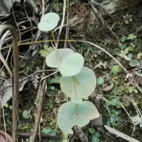 一年生草本,高10-30厘米,全株光滑无毛。茎直立,黄绿色,圆柱形,多分枝,枝柔弱。基生叶对生,具短柄,卵形;中上部茎生叶呈圆形的贯穿叶,直径7-20毫米,上面绿色,下面灰绿色,具突出的网状脉纹。复聚伞花序呈假二叉状分枝,具多花,有叶状苞片;花5数;花萼钟状,长5-6毫米,萼筒膜质,萼齿甚小,不整齐,三角形,长1-1.5毫米;