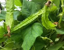 荚果带状,长9-15cm,宽1.5-2.5cm,嫩荚有柔毛,老荚无毛。花期6-7月;果期8-10月。