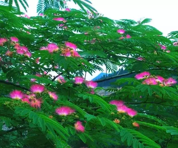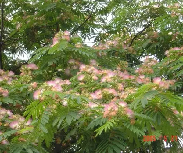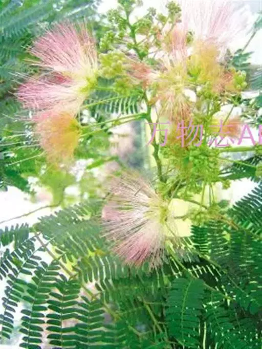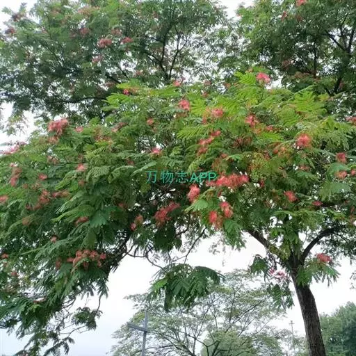 合欢,落叶乔木,高可达16m。树干灰黑色;嫩枝、花序和叶轴被绒毛或短柔毛。