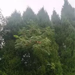 合欢树枯萎病是一种系统性传染病,对合欢树来说是最严重的病害。该病发生几率较大,幼苗及成品树都受到影响。其中,3-5年生树最易患枯萎病且发病速度快。另外,一些生命力弱的植株受此病影响,容易死亡。合欢枯萎病受气候条件、土质和地势、栽培环境及栽植管理的影响。高湿、多雨季节发病严重;土质粘重、地势低洼、排水不良,积水地易发病;移栽或修剪等管理过程中造成的伤口,会增加镰刀菌侵染机会。幼苗染病后,先是叶片变黄,然后根茎基部变软,常出现倒伏,最后全株枯死。成株染病的话,先是1-2根枝条出现症状,病枝上的叶片萎蔫下垂,叶色呈淡绿色或淡黄色,后期干枯脱落,随后部分枝条开始干枯,逐步扩展到整株,至死亡。截开主干断面,可见一整圈变色环,树根部断面呈褐色或黑褐色。