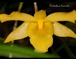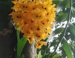密花石斛(D.densiflorum),花金黄色,唇瓣橙黄色。