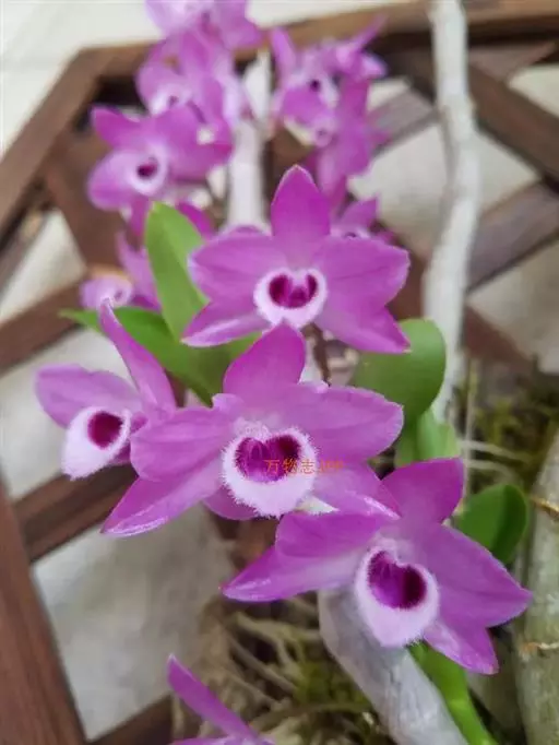 华丽石斛(D.superbum),花淡紫红色,唇瓣紫红色。