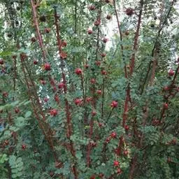 刺蔷薇:灌木,高1-3米;小枝圆柱形,稍微弯曲,红褐色或紫褐色,无毛,有细直皮刺。小叶片宽椭圆形或…