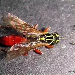 金环胡蜂是胡蜂科、胡蜂属昆虫。雌蜂体长约40毫米,工蜂体长25毫米,雌蜂体黑褐色,头部橙黄色,…