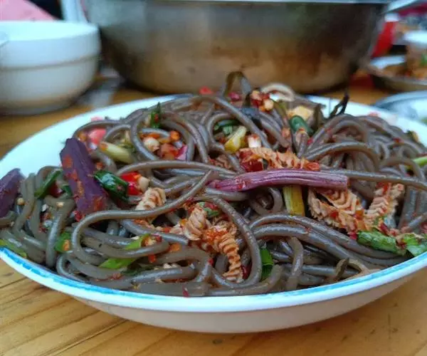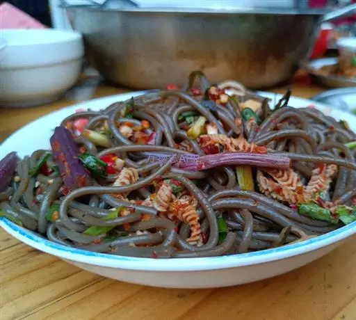 蕨根粉,顾名思义,就是蕨类植物的块根加工成的粉条或粉皮状的食物。这种特产于秦岭一带的食物,比起粉丝粉条来,它其貌不扬,肤色黝黑,但也正是让人难以接近的颜色,让它更适合女性朋友和老年人吃。它抗氧化,某种程度上能使你更年轻,虽是淀粉类,但吃了却不会发胖。