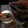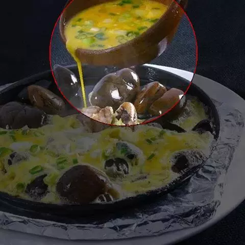 4、蕨根粉捞出放盘子内,倒入调味汁,把蒜拍碎,洒在上面即可!