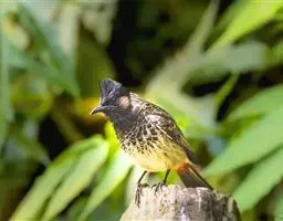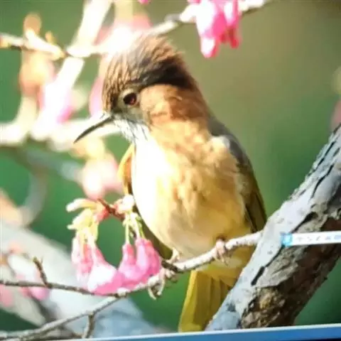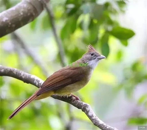 黄腹冠鹎:体长19-24厘米,是一种体型略大的褐色鹎。头顶橄榄褐色具黑褐色羽冠。白色的喉膨起,…