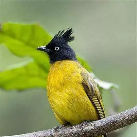 黑冠黄鹎:体长18-21厘米,是一种中等体型偏黄色鹎。整个头、颈、颏、喉黑色,头顶有显著直立的羽冠,…