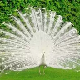 白孔雀,脊椎动物,鸟纲,雉科。其全身洁白无瑕,羽毛无杂色,…