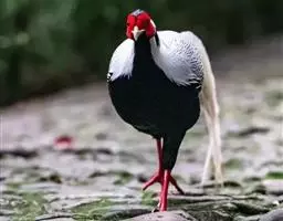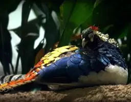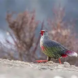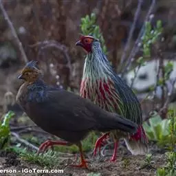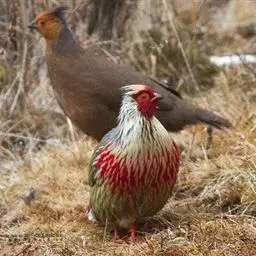 血雉雉科血雉属鸟类,别名血鸡、松花鸡,血雉的雄鸟大覆羽、尾下覆羽、尾上覆羽、脚、头侧、腊膜为红色,…