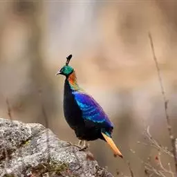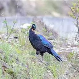 黑长尾雉大型鸡类,体长53~88厘米。雄较雌大。雄鸟通体紫蓝色,脸鲜红色,翅上有一条显著的白色翅斑…