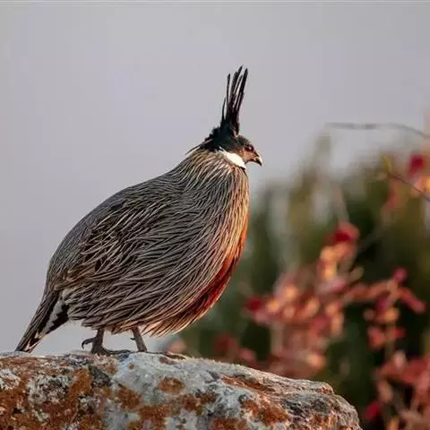 黄腹角雉:是鸟纲、雉科中国特产的一种鸟类。体长约50-65厘米。雄鸟上体栗褐色,…