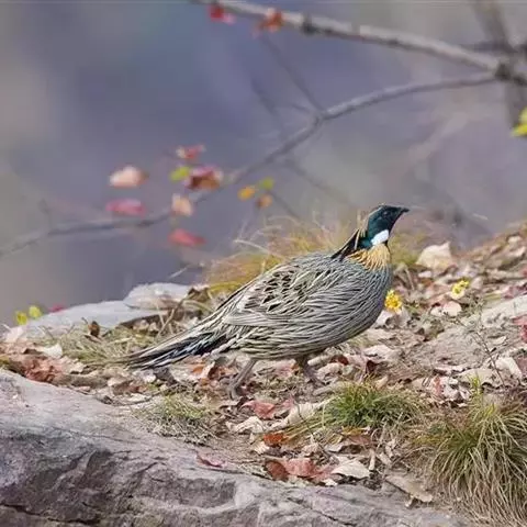 白颈长尾雉:大型鸡类,体长81厘米,体型大小和雉鸡相似。雄鸟头灰褐色,颈白色,脸鲜红色,其上后缘有…