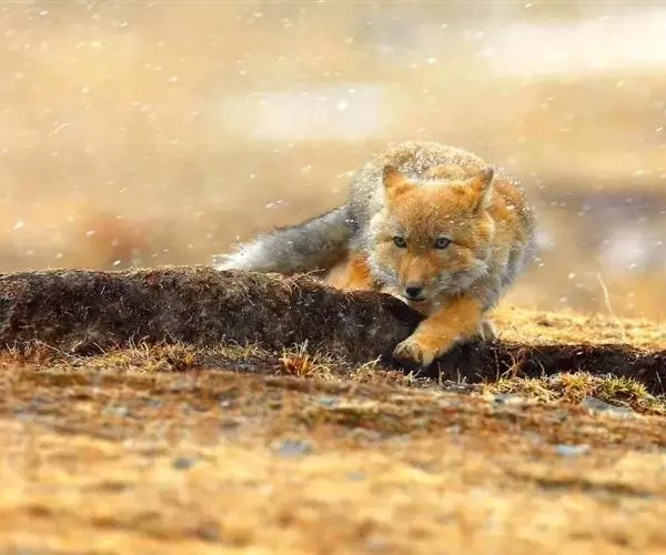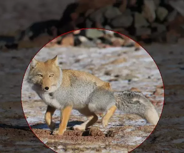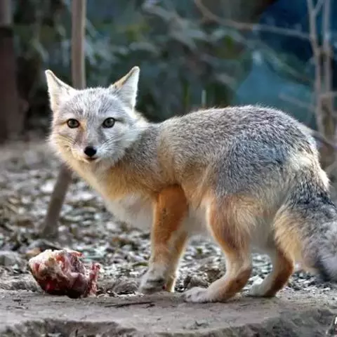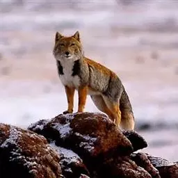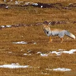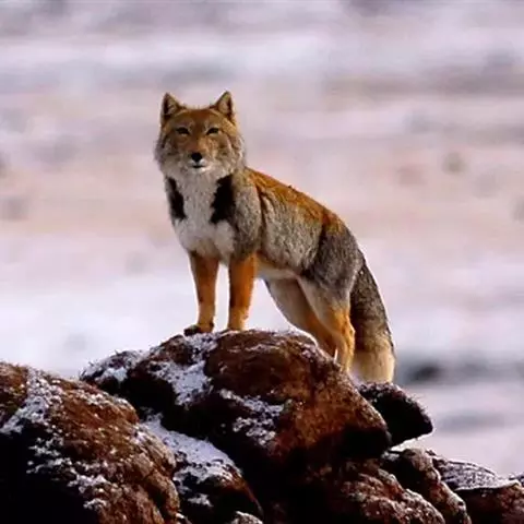 藏狐(学名:Vulpes ferrilata)大小接近赤狐或略小,但耳短小,耳长不及后足长之半,耳背之毛色与头部及体背部近似。尾形粗短,长度不及体长之半。冬毛毛被厚而茸密,毛短而略卷曲。背中央毛色棕黄,体侧毛色银灰。尾末端近乎白色。头骨之吻部十分狭长,吻部中央部位之侧缘稍向内凹入,第二前臼齿处之吻宽约为腭长之1/4。犬齿甚长,上犬齿之高约等于第四前臼齿加第一臼齿长度之总和。