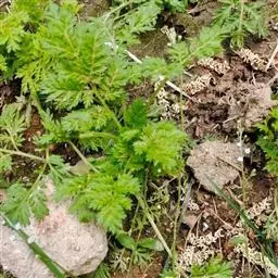 三裂叶豚草是直根系植物,其植株较豚草高大粗壮,株高可达250-300厘米,茎粗可达2.5-3.0厘米,最小的植株高30-40厘米,茎粗5-6毫米。茎绿色,有纵条棱,密生瘤基直立硬毛,后期毛脱落残留下瘤基。分枝大部分从植株的中上部分枝,发育好的有四级分枝,形成小乔木状的巨大植株,也有少量植株自基部长出数条粗壮的分枝,形成灌木丛状。