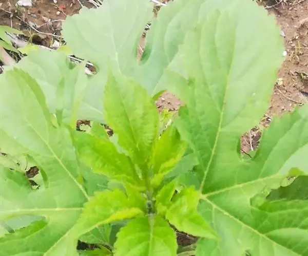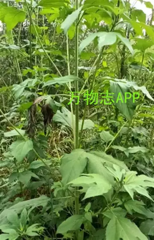 三裂叶豚草(学名:Ambrosia trifida L.):一年生粗壮草本植物,高50-120厘米,有时可达170厘米,有分枝。叶对生,有时互生,具叶柄,下部叶3-5裂,上部叶3裂或有时不裂,上面深绿色,背面灰绿色,两面被短糙伏毛。在枝端密集成总状花序。总苞浅碟形,绿色;总苞片结合,外面有3肋。花托无托片,具白色长柔毛,每个头状花序有20-25不育的小花;小花黄色,长1-2毫米,花冠钟形,上端5裂,雌头状花序在雄头状花序下面上部的叶状苞叶的腋部聚作团伞状,具一个无被能育的雌花。花期8月,果期9-10月。